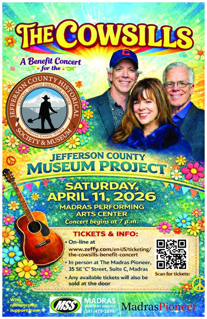 Tickets are available by clicking the button (above), or online at www.Zeffy.com/en-US/ticketing/the-cowsills-benefit-concert. Tickets may also be purchased in person at the Madras Pioneer newspaper office at 35 SE C St., Suite C in Madras from 8 a.m. to 2 p.m. Monday through Friday.